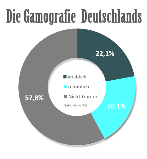Im April 2014 meldete die amerikanische Entertainment Software Association (ESA), dass laut ihrer jährlichen Studie Essential Facts About the Computer and Video Game Industry, die holde Weiblichkeit gut 36% der amerikanischen Gamer ausmache. Das mag 2014 in den Staaten so gewesen sein, lässt sich aber über die aktuelle Studie leider so nicht mehr nachvollziehen.
